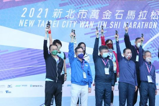 2018萬金石馬拉松開跑記者會在新北市政府舉行,副市長侯友宜(右)宣布報名訊息,並說明首度推出「萬金石馬拉松APP線上報名」。